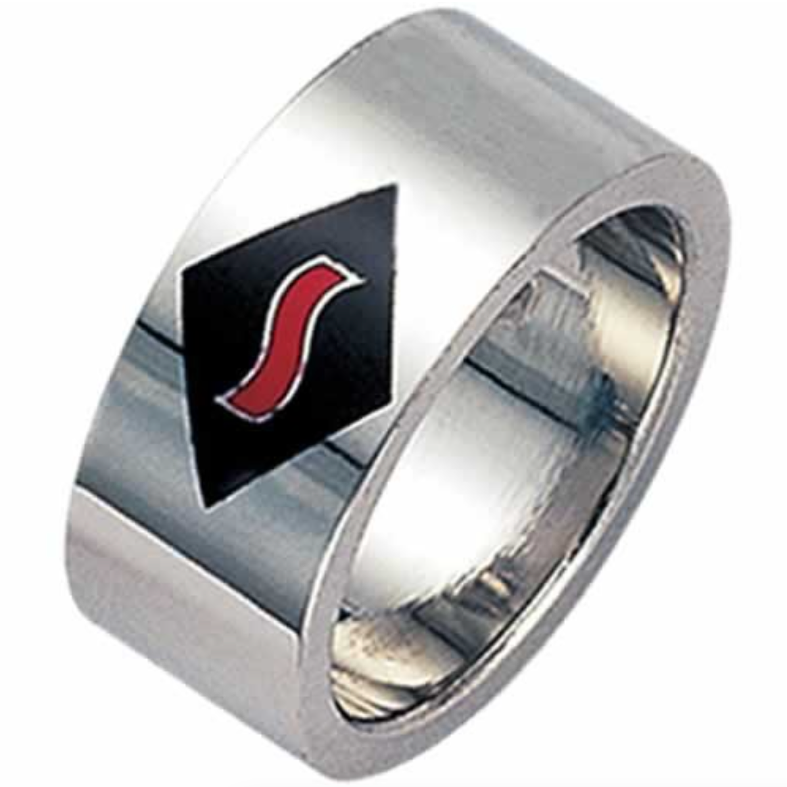 Stainless steel with Black Enamel Red Wave ring