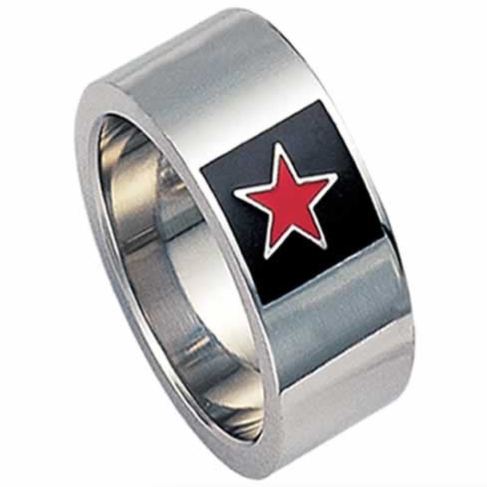 Stainless steel with Black Enamel with Red Star ring