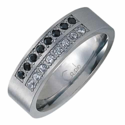 Stainless Steel with Clear and Black Cubic Zirconias Ring