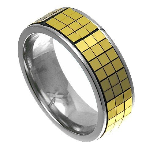 Stainless Steel Gold Pvd Greek Key Spinner Ring