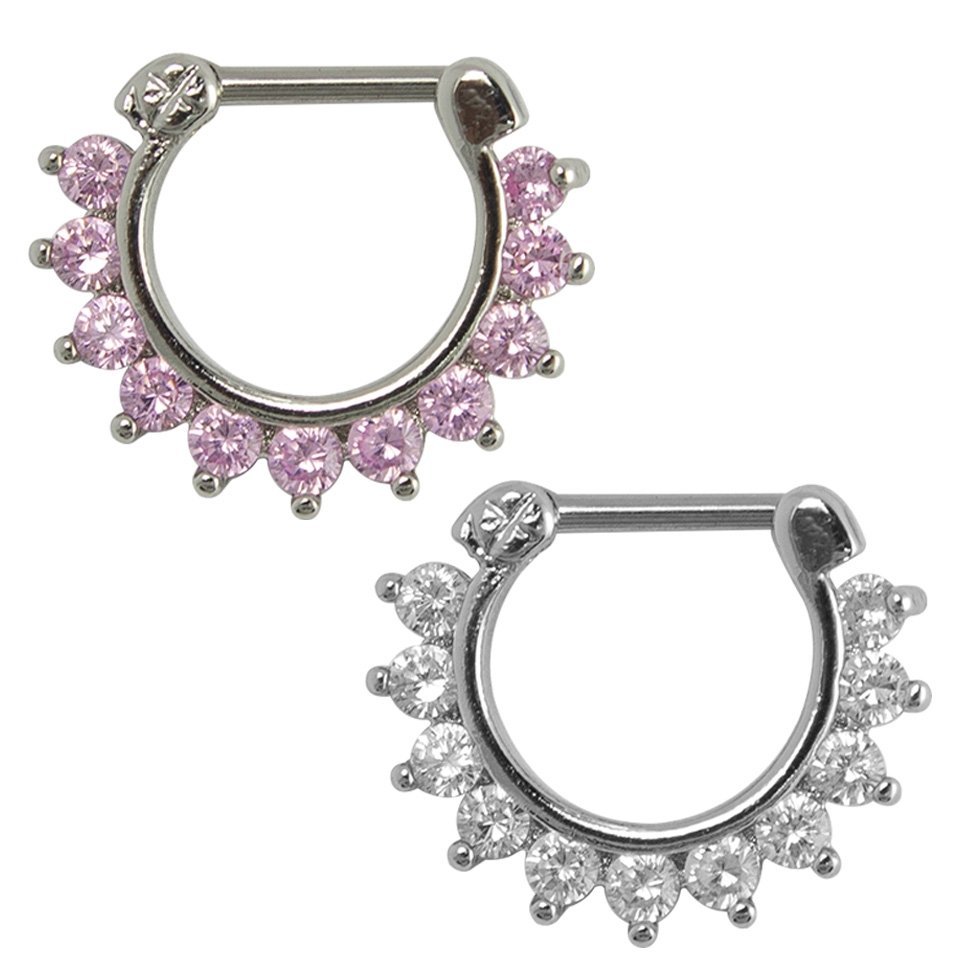 This is a One of a Kind Septum in Stainless Steel with Jeweled surface in Pave Style.