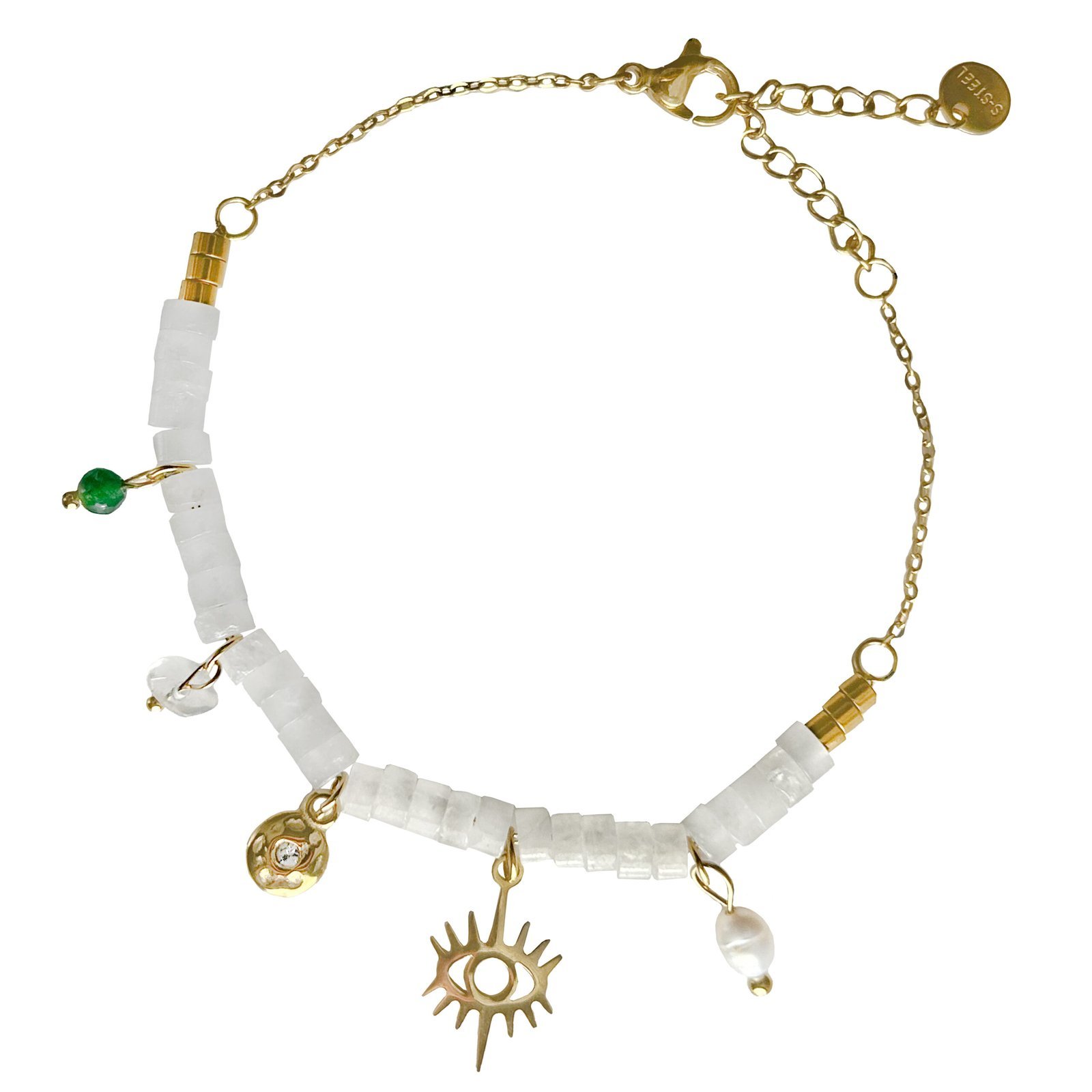 Stainless Steel with White Beads and Charms Bracelet quantity