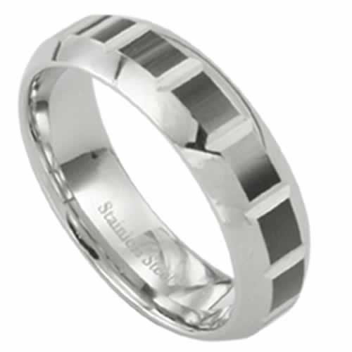 Stunning Stainless Steel Ring with Black PVD and Carved Lines