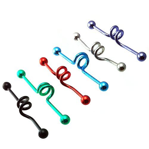 Surgical Steel Anodized Industrial Barbell with Center Spiral Design