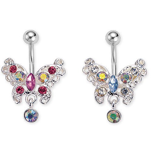Surgical Steel Butterfly Belly Ring Dangle With CZ Stone