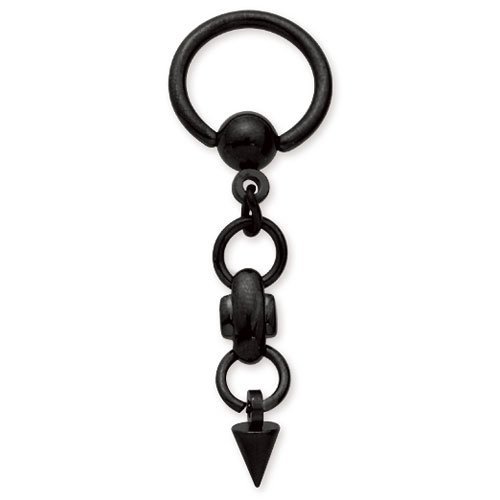 Surgical Steel Captive Ring with Black PVD cone dangle