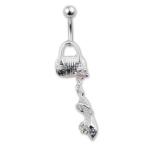 Curved Belly Ring With Handbag and Dangle Jeweled Sandal