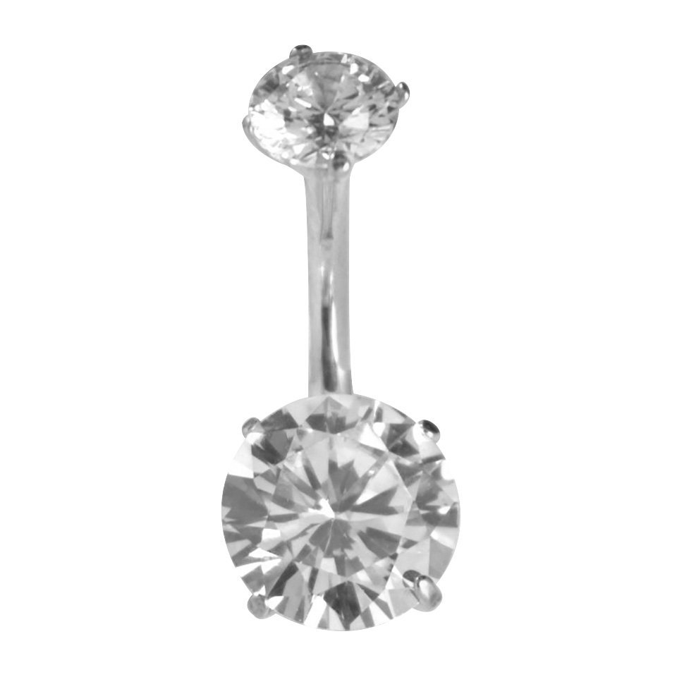Surgical Steel CZ Belly Ring – Steel/Clear