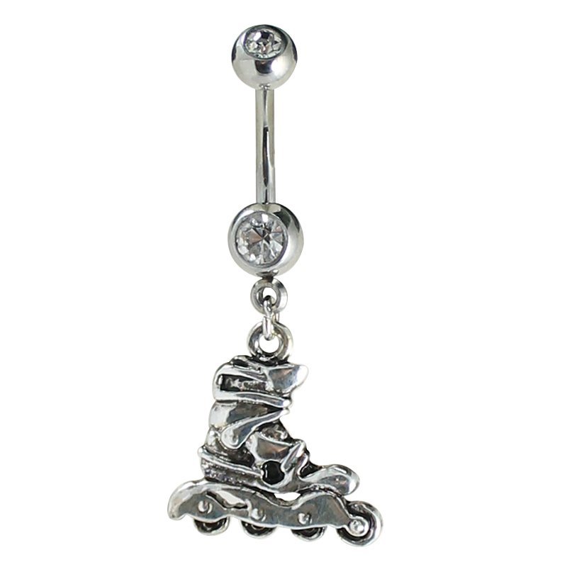 Surgical Steel CZ Belly Ring with Dangle Rollerblade quantity