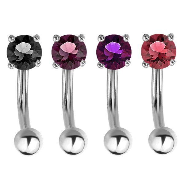 Surgical Steel Eyebrow Ring With Single Prong Set 3mm Jewel. This Item Has Four Colors To Choose From!