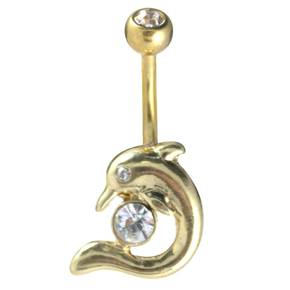 Surgical Steel Gold PVD CZ Stone Dolphin Belly Ring