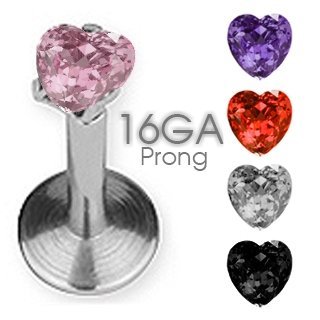 Surgical Steel Internally Threaded Labret With Heart Shaped Stone