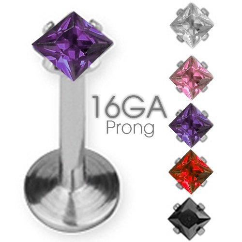 Surgical Steel Internally Threaded Labret With Princess Cut Shaped Stone