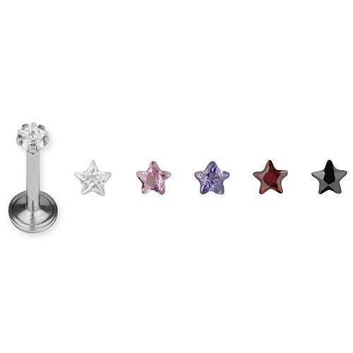 Surgical Steel Internally Threaded Labret With Star Shaped Stone quantity