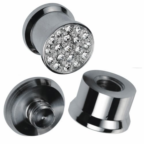 316L – Surgical Steel Internal Screw On Flesh Tunnel Plug W/ Clear Encrusted Cz!!