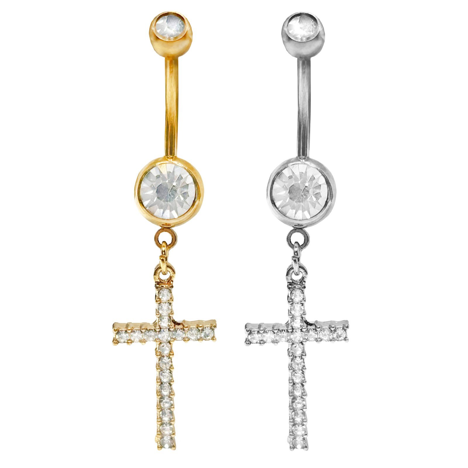 Surgical Steel Jeweled Cross Belly Ring