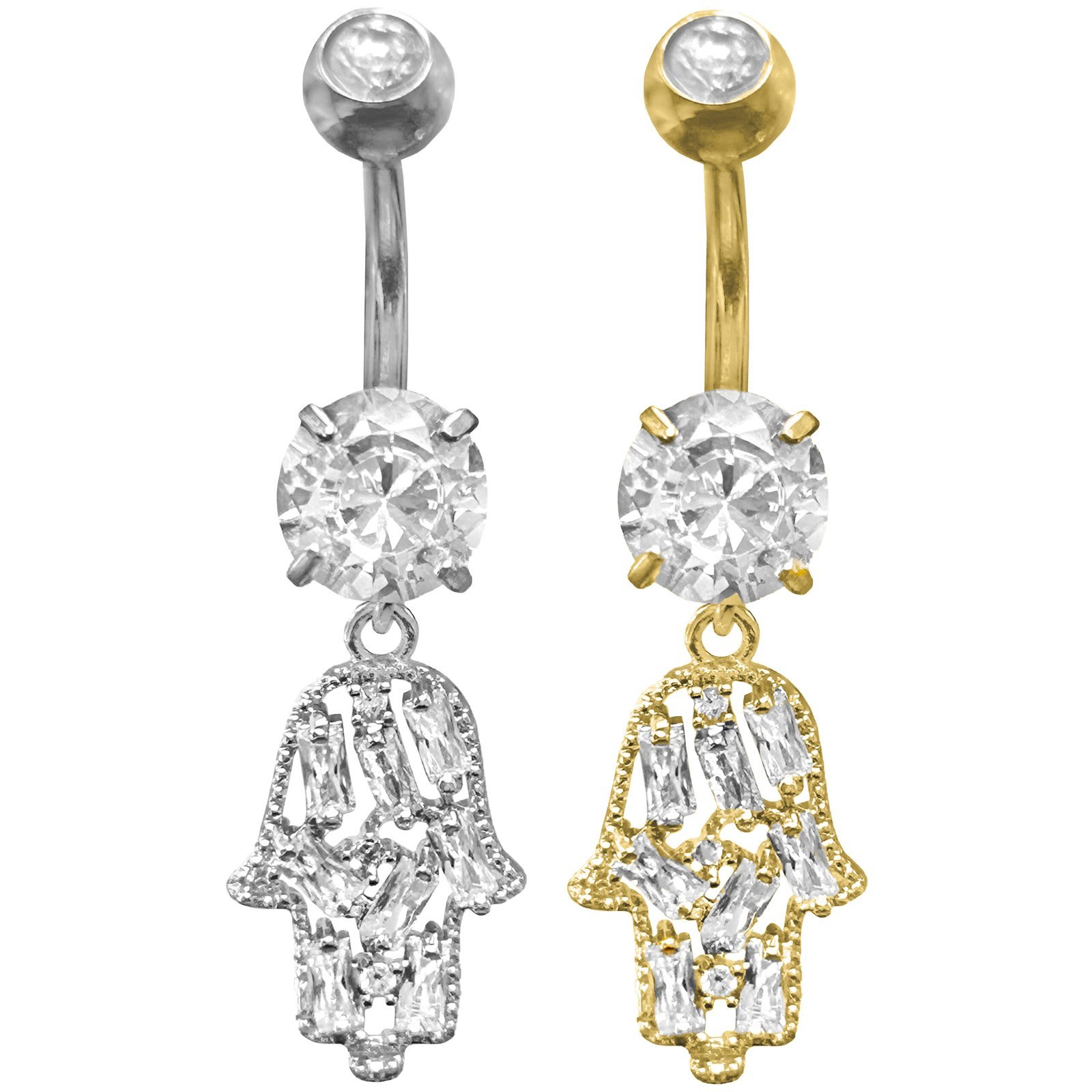 Surgical Steel Jeweled Hamsa Belly Ring