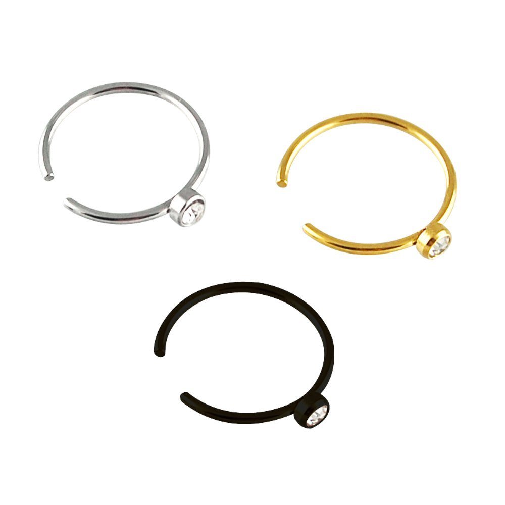 Surgical Steel Nose Hoop With Clear Colored Stone. This Item Is Available In Three Colors.