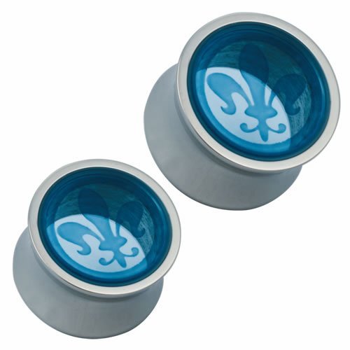 Surgical Steel Plug w/ See Thru Blue Fleur De Lis Design