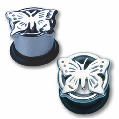 Surgical steel plug with carved butterfly design and Rubber O-Ring Stopper quantity