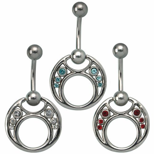Surgical Steel Round Modern Design CZ Belly Ring