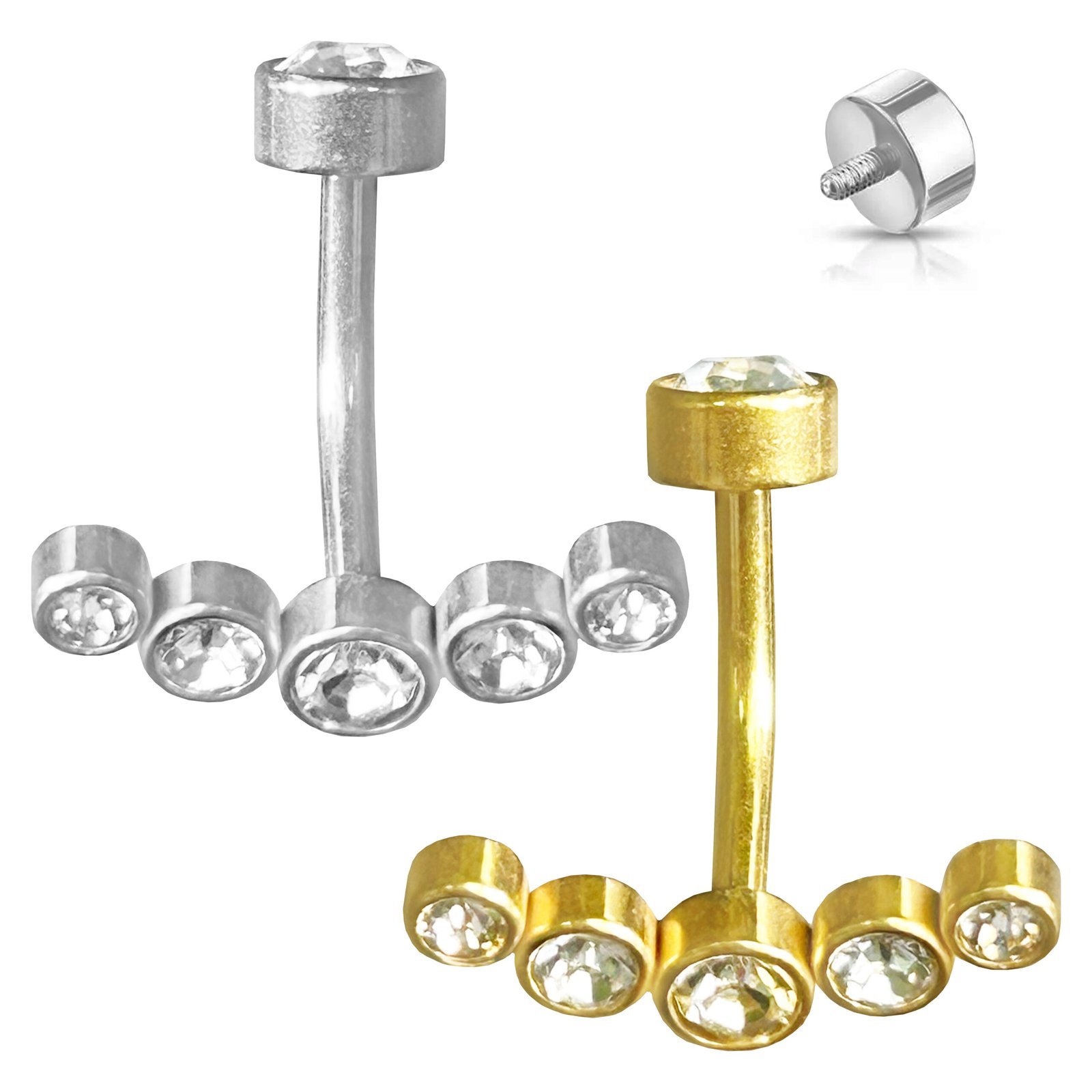 Surgical Steel Rounded CZ Belly Ring in a Curved Row