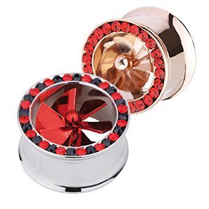 Stones Encrusted 316L surgical Steel Rotating Propeller Flared Flesh Tunnel Plug. Multiple Size Options Available.