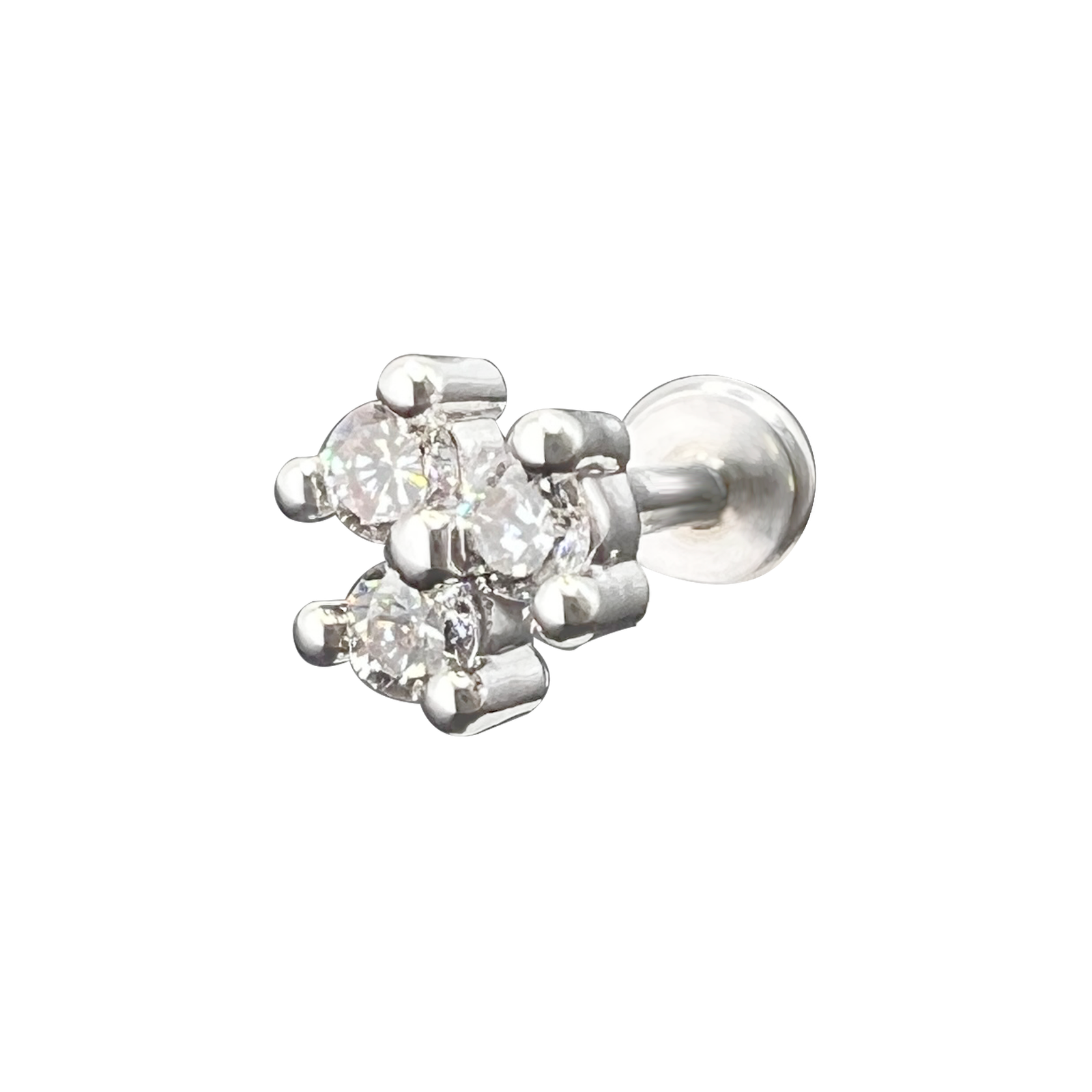 Jeweled Clover Barbell Cartilage Earring For Tragus/Helix Piercings.