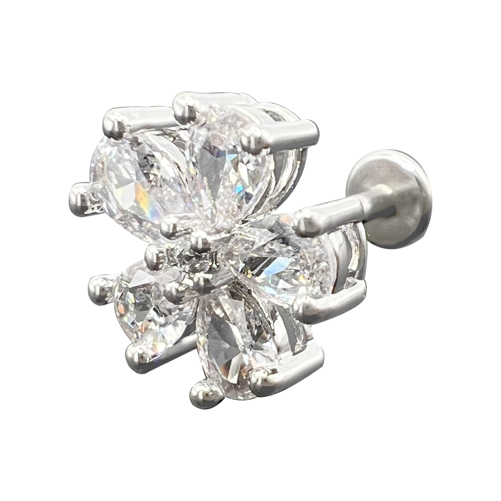 Jeweled Flower Barbell Cartilage Earring For Tragus/Helix Piercings.