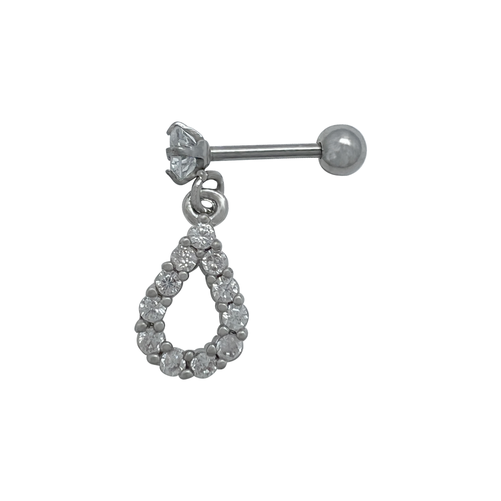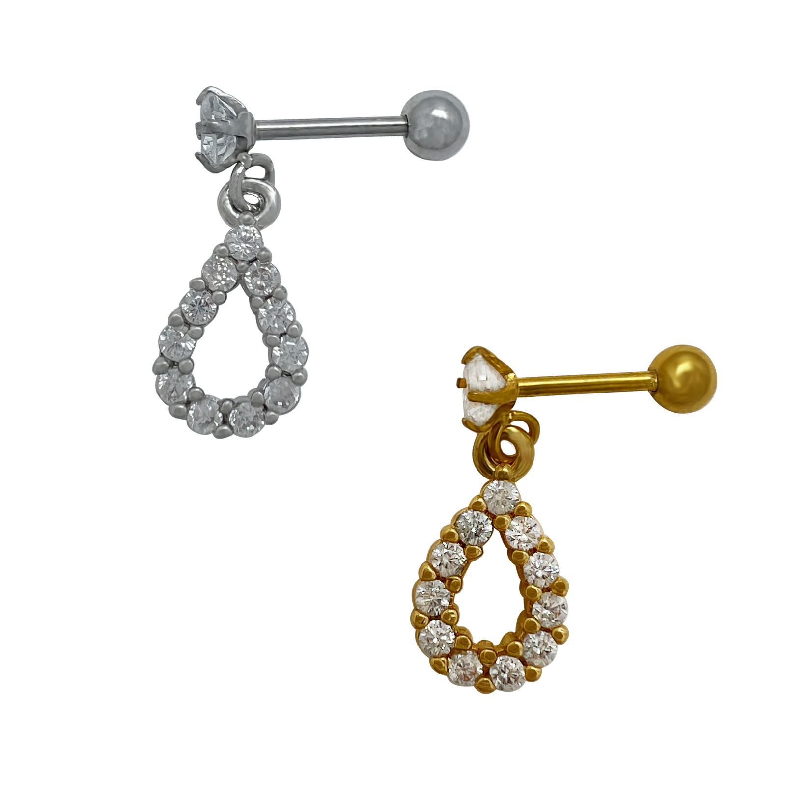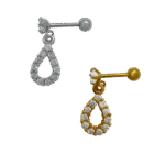 Jeweled Drop Barbell Cartilage Earring For Tragus/Helix Piercings. Two Colors Available.