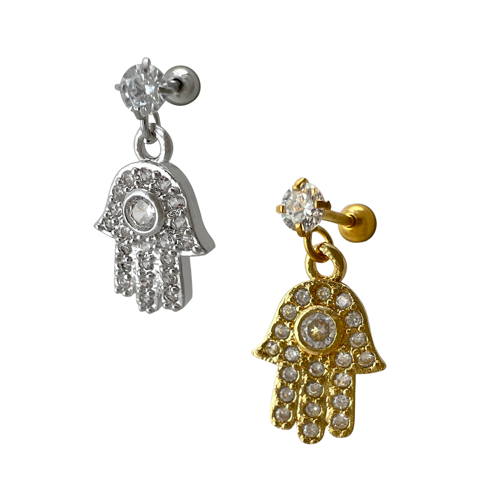 Jeweled Hamsa Barbell Cartilage Earring For Tragus/Helix Piercings. Two Colors Available.