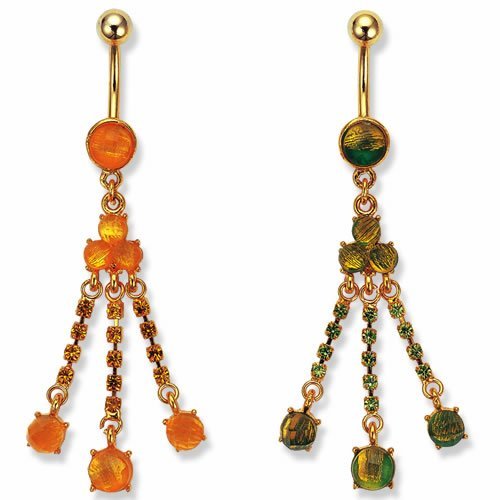 Cute Gold Plated belly ring with fancy jewel drop