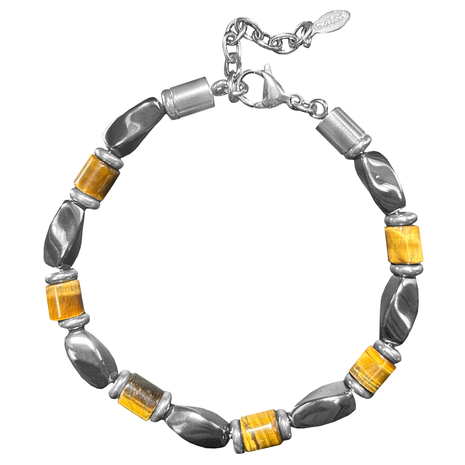 Tiger Eye & Hematite Natural Stone Bead Bracelet