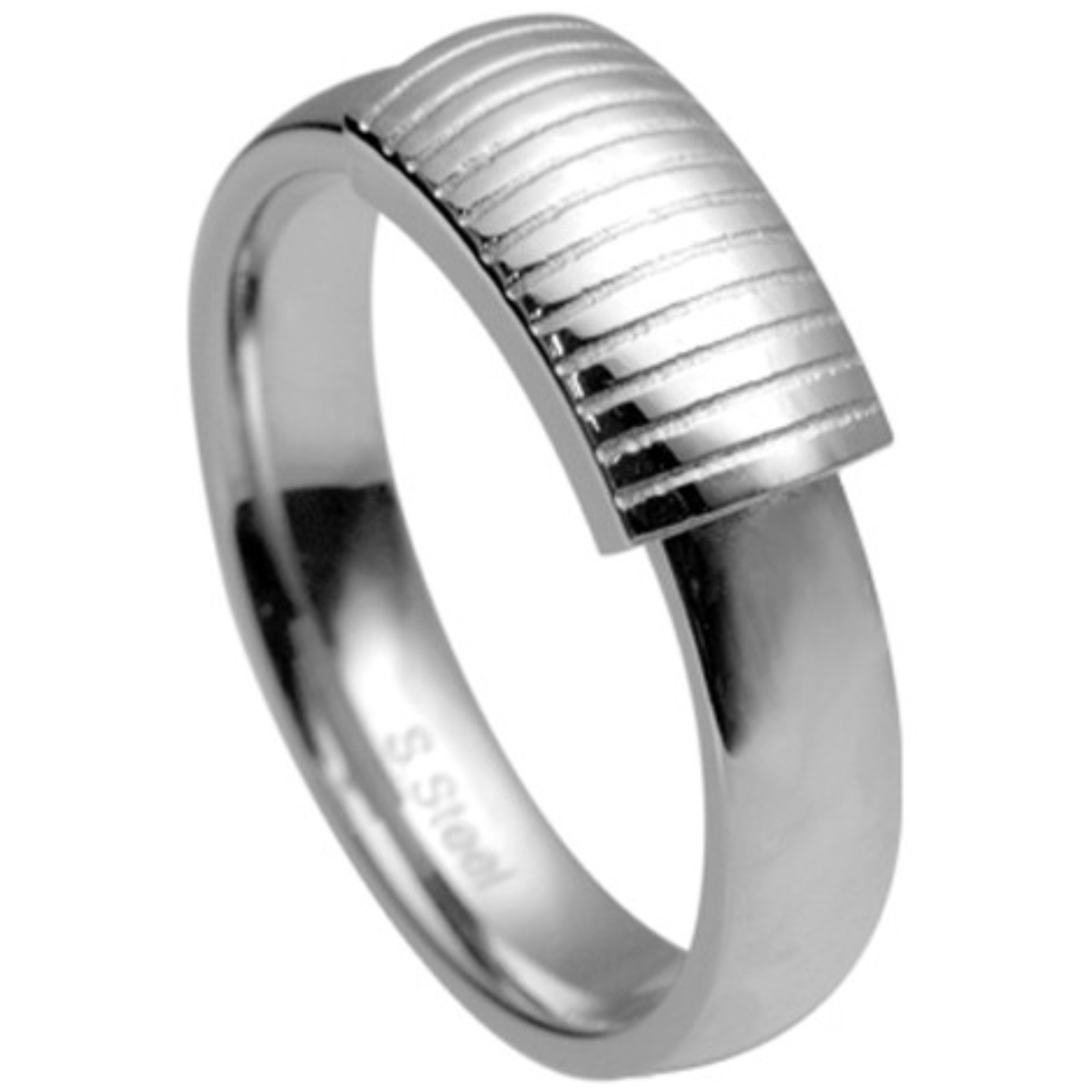 Urban Stainless Steel Ring With Etched Vertical Lines.