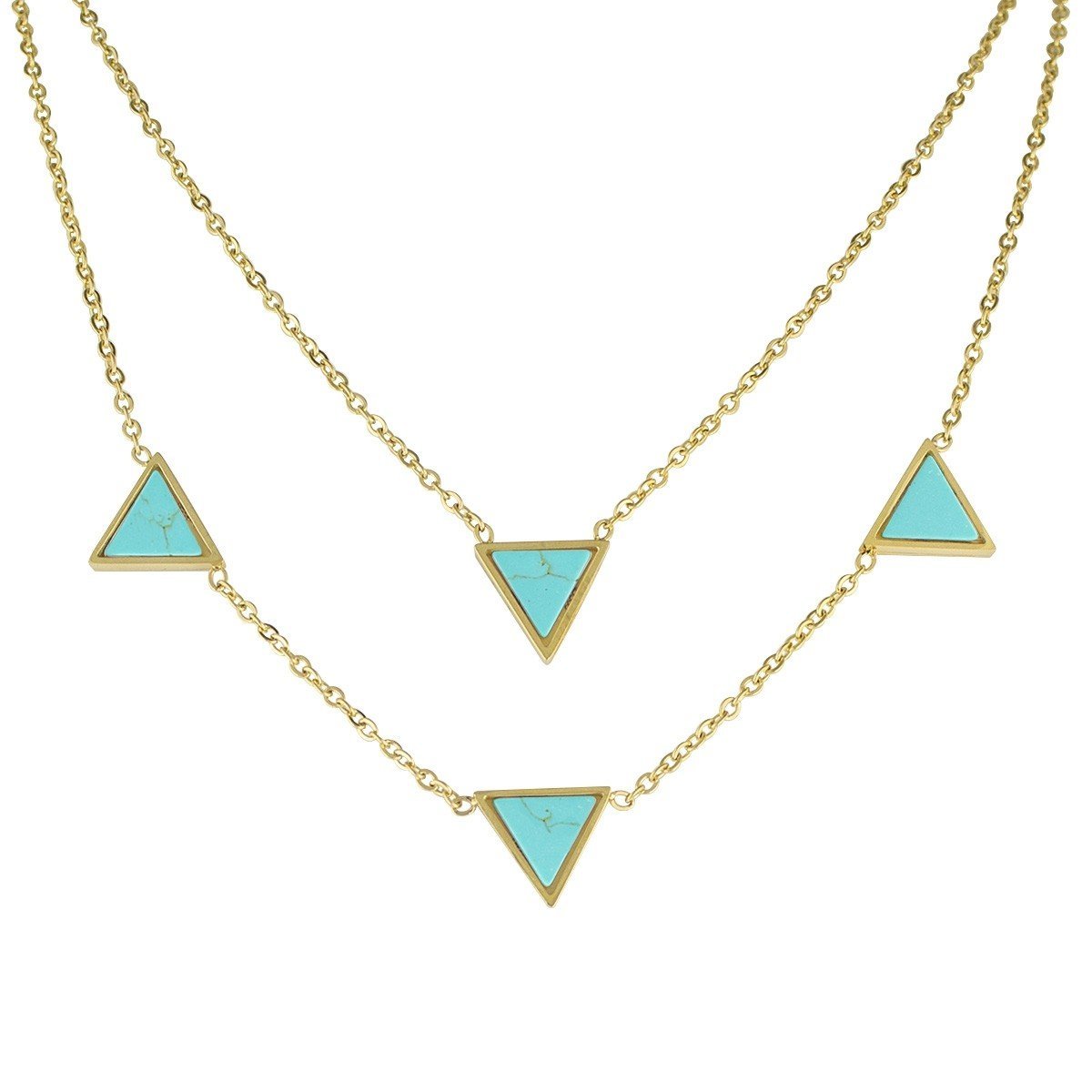 Women's Stainless Steel Gold PVD Turquoise Triangle Stone Necklace quantity
